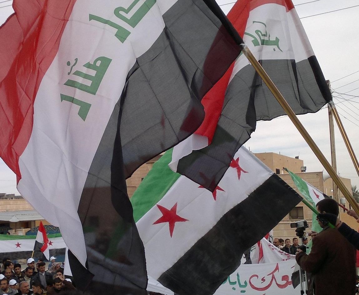الرئيسية/تقرير: كيف سيكون التعامل العراقي مع سوريا الجديدة؟/رفع العلمين العراقي والسوري الجديد في تجمع سابق رفع العلمين العراقي والسوري الجديد في تجمع سابقرفع العلمين العراقي والسوري الجديد في تجمع سابق