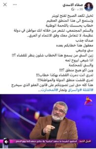 الرئيسية/عضو التيار الوطني الشيعي صفاء الأسدي يرد على رئيس كتلة العصائب النيابية بشأن العفو (فيديو)/صفاء الاسدي صفاء الاسدي