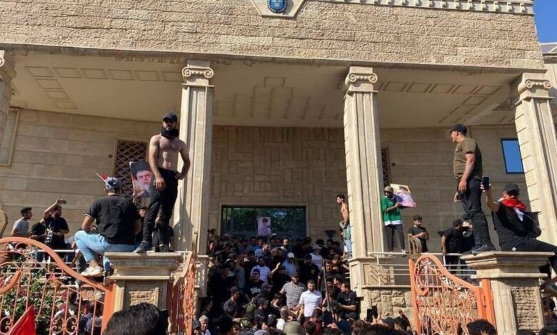 مراسلنا .. محتجون غاضبون يقتحمون السفارة السويدية في بغداد (صورة)